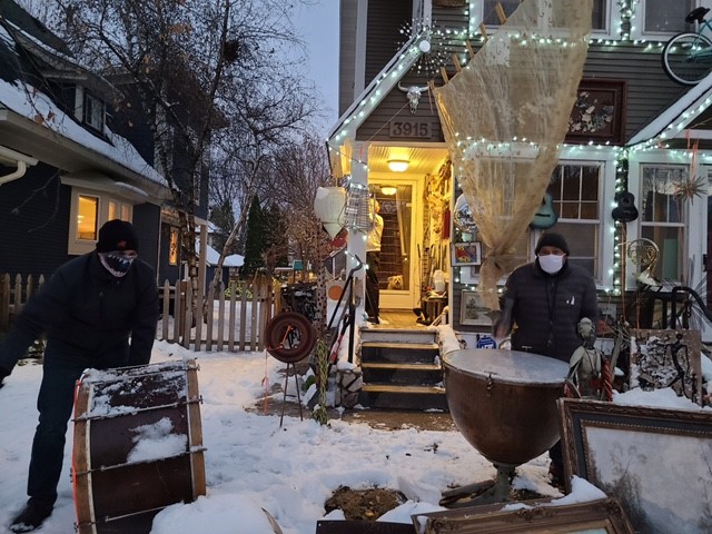 Our shed growing up was built with the tongue & groove paneling and flooring my siblings and I salvaged, with our father, from the homes across the street, that the hospital would soon demolish to pave into a parking lot. The second story and wood stove we added to a garden shed, on the eve of our sister’s wedding, a simple monastic space my brother would call home for nearly a decade. The shed he and his, now wife, built with me fully of scrap dumpstered from a set strike at the Jungle Theater, it was my birthday request and filled me with thanks. That shed still stands, though we have long since sold that house, it is roofed with the topper from a Ford pick-up truck I had scrapped after the gas tank fell off. It is in us, the men in my family. It is an art validated as such when the McKnight Foundation Commissioned my brother and a friend to build a salvaged material shack on the patio of their new headquarters on the Mississippi river. Today, as I celebrated this latest shack and worked the story of it to meet the word reclaim a new thread of wonder stitched together these men I love.