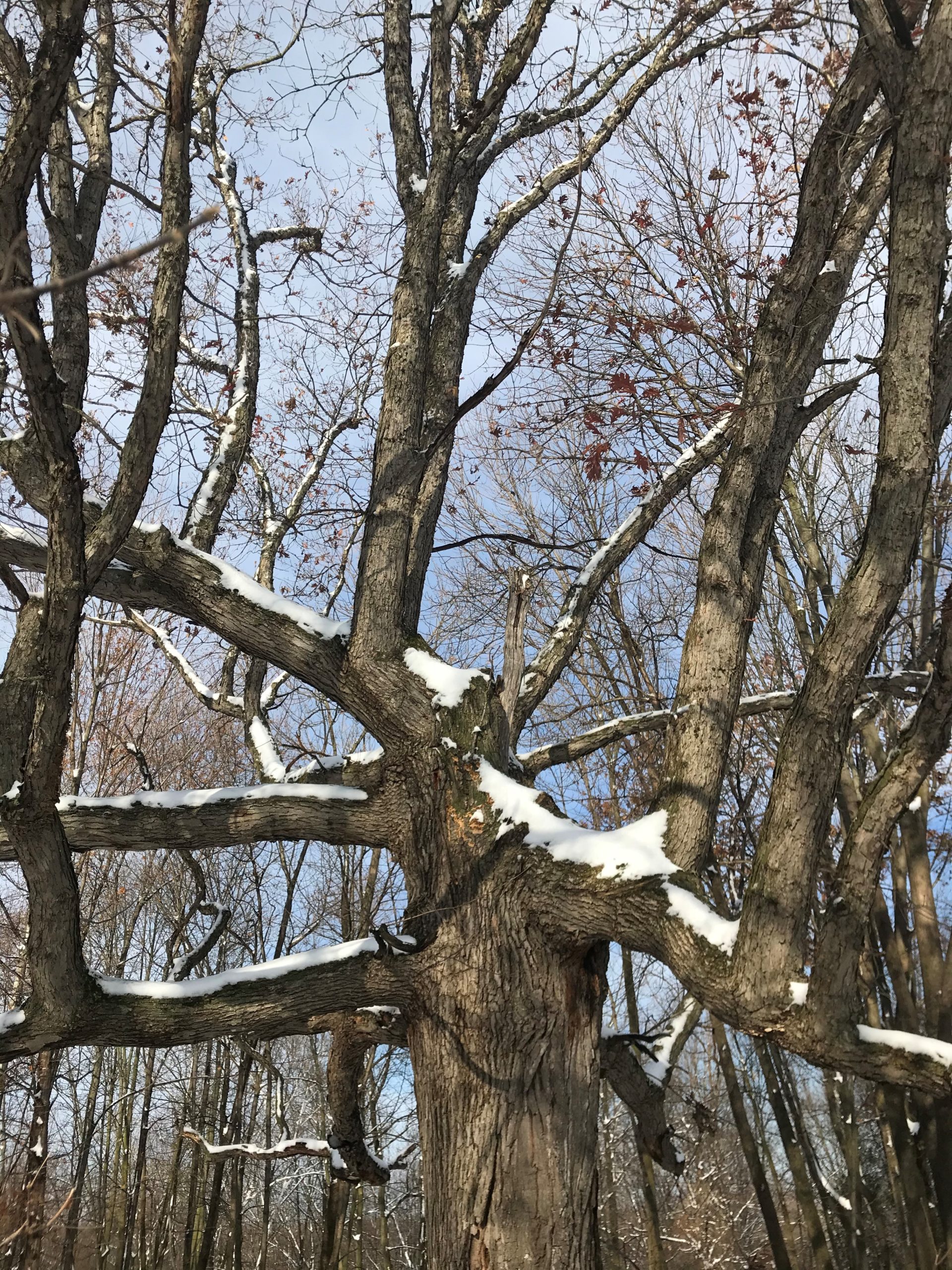 With heavy boots I walk now through the cold snow to the woodlands. In the Spring, I will find my feet back on the soft grasses again, weaving through patches of wild violets on my way to visit Great Grandmother Oak. She teaches me how to stay open and present through both barren and flowering seasons. That’s the way of it, isn’t it? We struggle, we suffer, we experience joy. Beautiful to remember that through it all, we have constant and precious companions. We belong, to each other and to the earth.